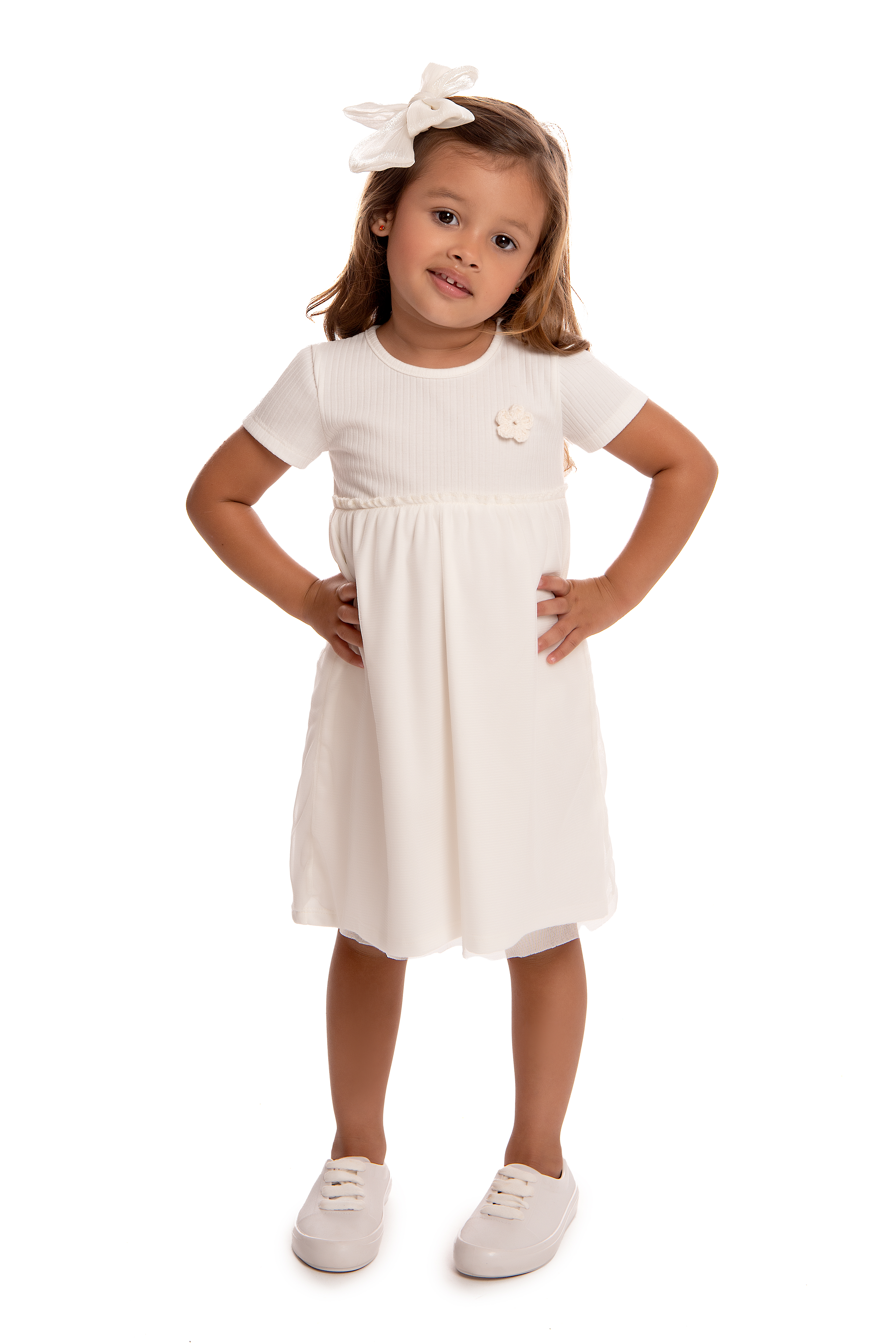 Delicado e cheio de charme, esse vestido infantil branco é a escolha perfeita para ocasiões especiais e também para momentos do dia a dia. 💖